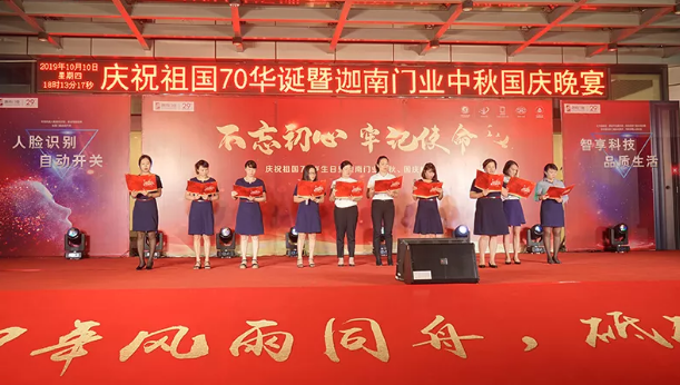 10月10日,迦南门业”不忘初心,牢记使命“中秋国庆晚会在迦南产业园盛大举行。在举国上下同庆新中国成立70周年的重要时刻,迦南人用自己的方式为伟大祖国送上了一份超燃的生日礼物。
